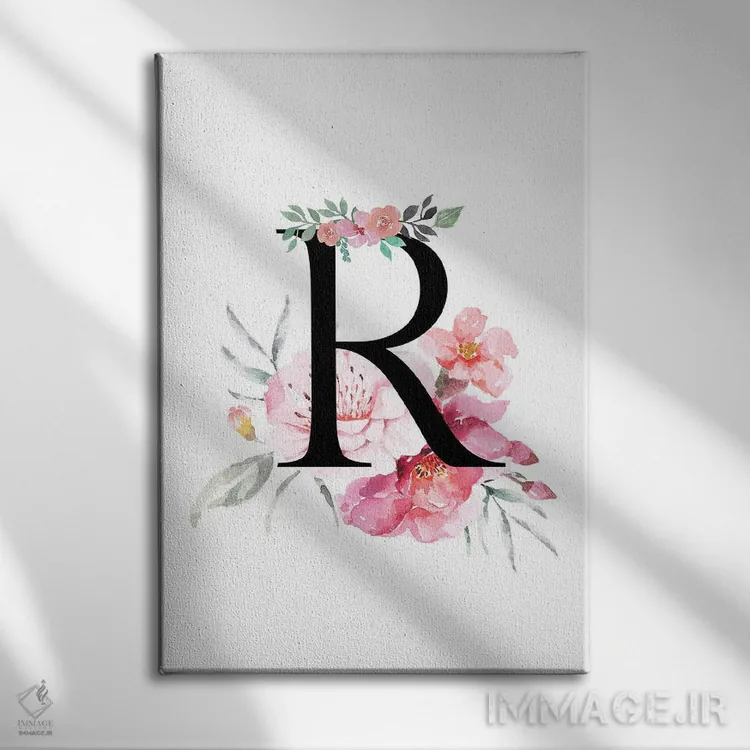 تابلو دکوراتیو حرف R با گل های آبرنگی اثر پیج ترنر