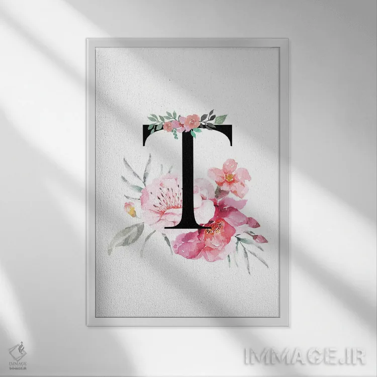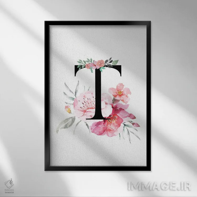 تابلو دکوراتیو حرف T با گل های آبرنگی اثر پیج ترنر