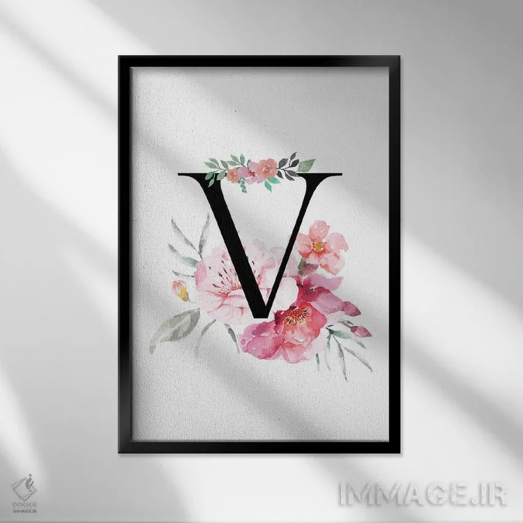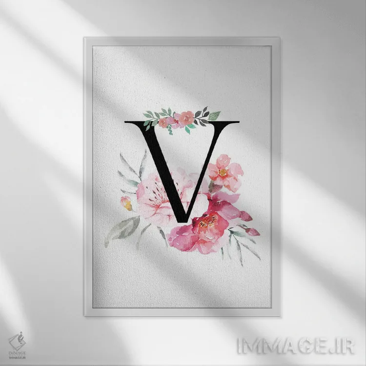 تابلو دکوراتیو حرف V با گل های آبرنگی اثر پیج ترنر