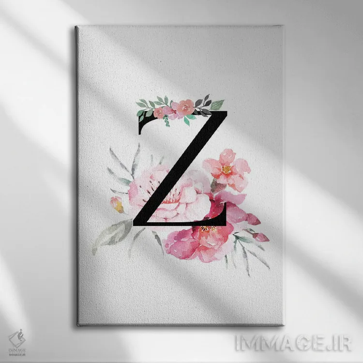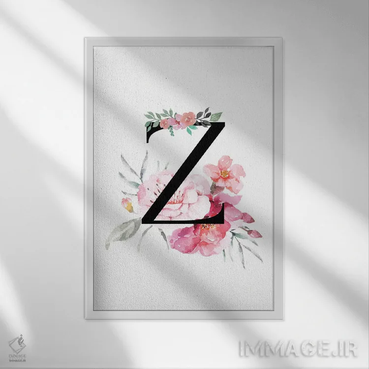 تابلو دکوراتیو حرف Z با گل های آبرنگی اثر پیج ترنر