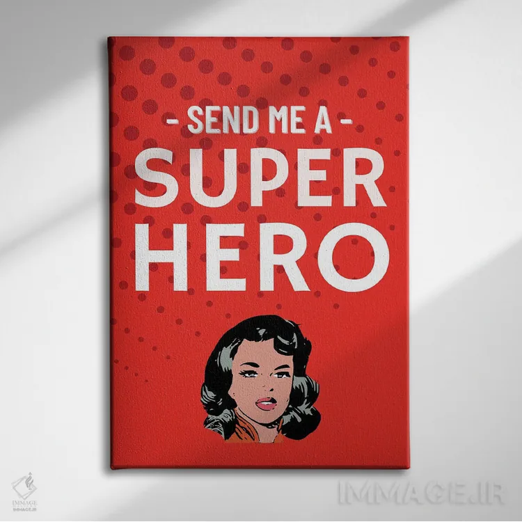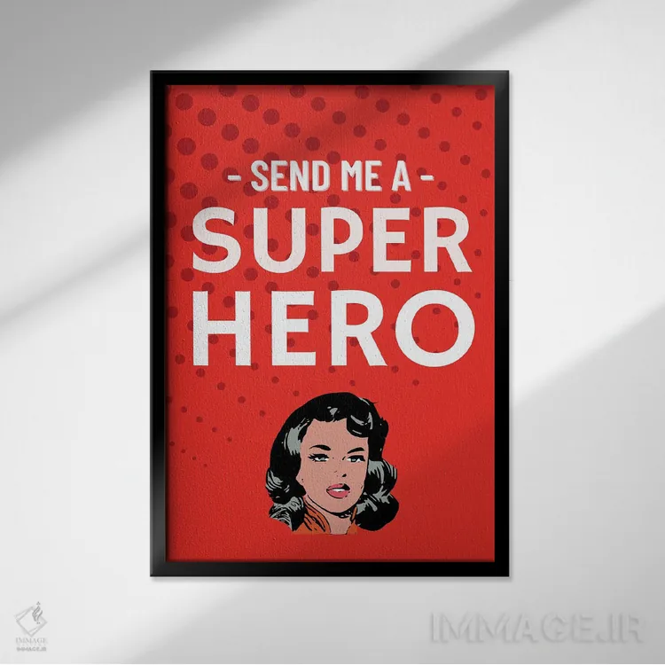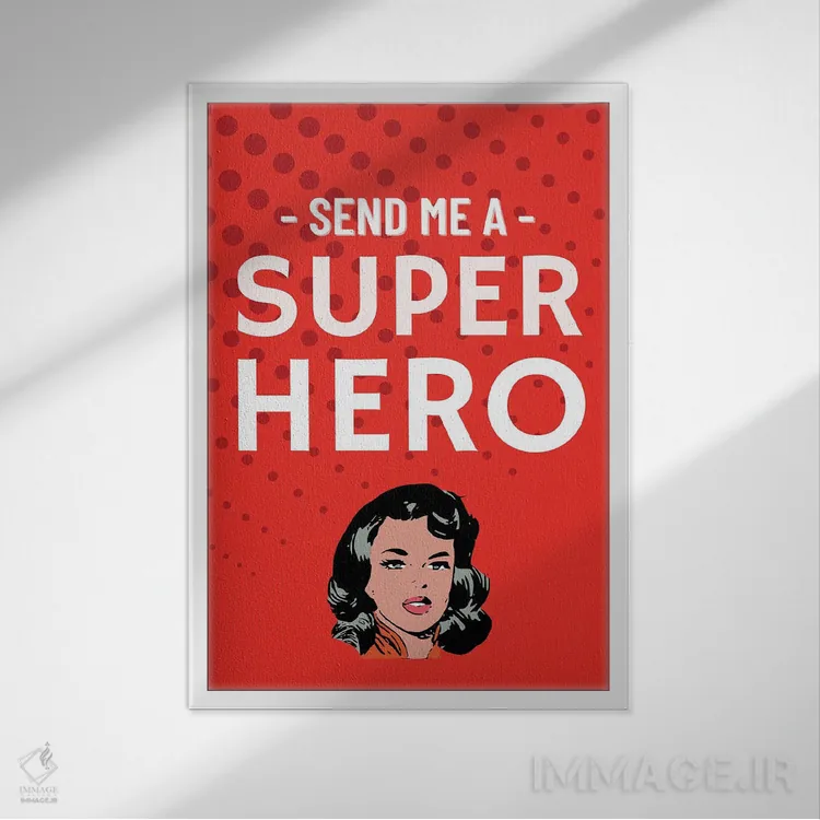 «برایم کمیک ابرقهرمانی قرمز بفرست» اثرِ «پیج ترنر» یک قاب مدرن و خوشفرم است؛ موضوعِ این اثر در اجرای هنری خوانا و سئوپذیرِ دیواری میشود.