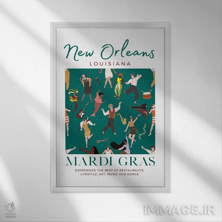 تابلو دکوراتیو کارناوال ماردی گرا نیواورلئان اثر پیج ترنر - نمای قاب‌دار سفید