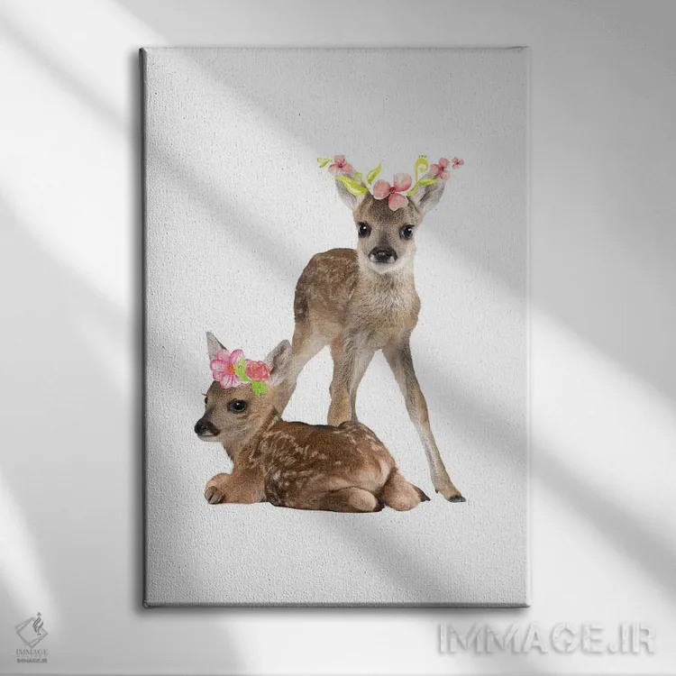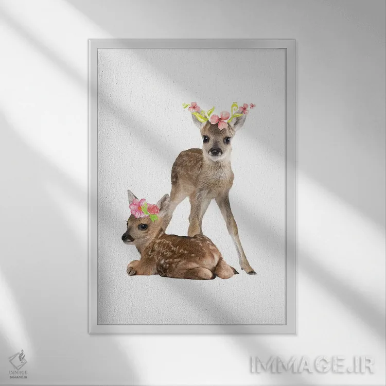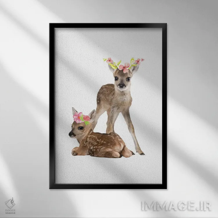 «عکاسی از گوزنهای بچه با تاجهای گل آبرنگی» اثرِ «پیج ترنر» از آن کارهاییست که به دیوار، انرژیِ نرم و زنده میدهد؛ برای اتاق کودک (بدون لحن کودکانه) انتخاب خوبیست. به دیوار، قصه میدهد—اما قصهای آرام و شیک.