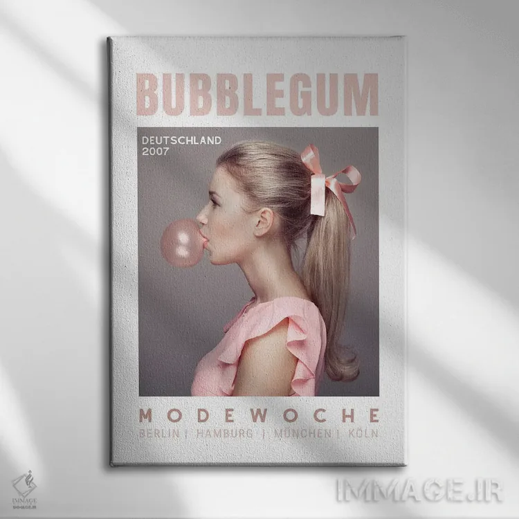 تابلو دکوراتیو جلد مجله آلمانی صورتی آدامسی با تصویر دختر با دم اسبی اثر پیج ترنر