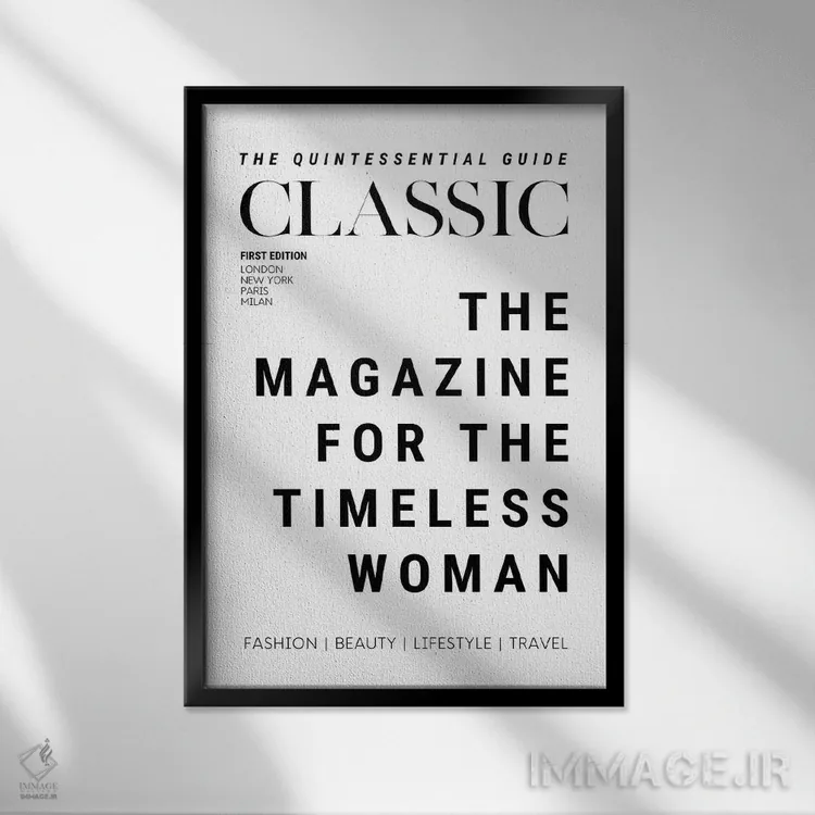 «جلد مجله زنان کلاسیک برای زن همیشهمدرن» اثرِ «پیج ترنر» یک اثر گرافیکیِ مرتب است که با قابهای ساده و چیدمانهای امروزی خوب مینشیند.
