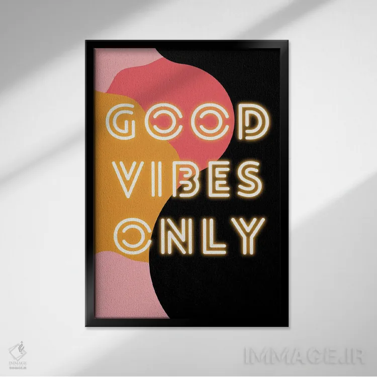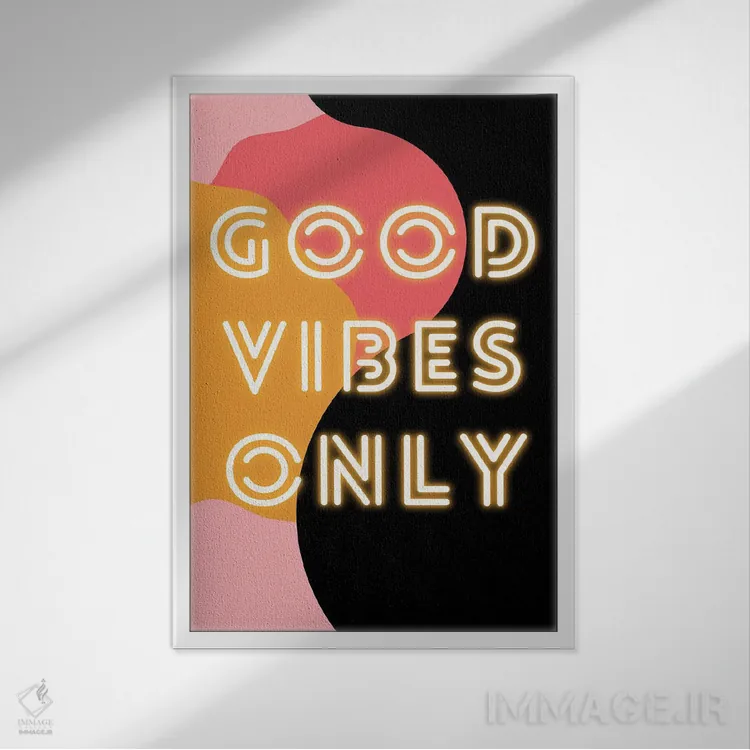 تابلو دکوراتیو "فقط انرژی مثبت نئونی" در صورتی رترو اثر پیج ترنر
