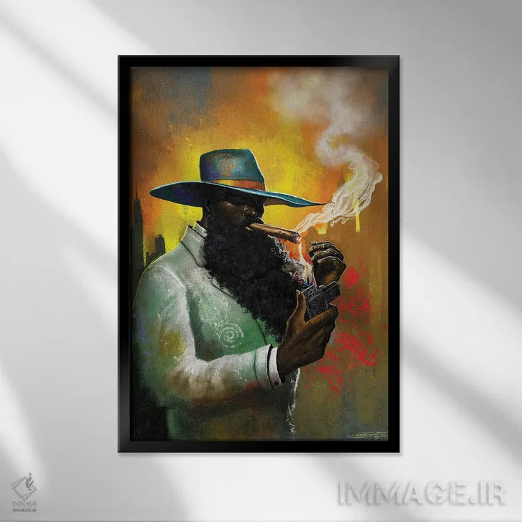 براساس پالت ترکیبی اثر، قاب تیک گرم (چوبی) پیشنهاد اول است و مشکی مات (فریم متوسط) مکمل. برای سفارشهای پروژهای با ابعاد و قابهای اختصاصی با ایماژ در تماس باشید.