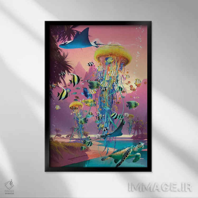 براساس پالت ترکیبی اثر، قاب تیک گرم (چوبی) پیشنهاد اول است و مشکی مات (فریم متوسط) مکمل. برای سفارشهای پروژهای با ابعاد و قابهای اختصاصی با ایماژ در تماس باشید.