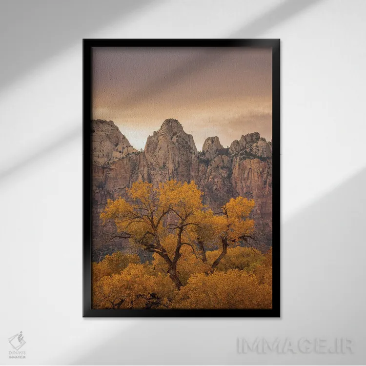 براساس پالت گرم اثر، قاب تیک گرم (چوبی) پیشنهاد اول است و مشکی مات (فریم متوسط) مکمل. برای سفارشهای پروژهای با ابعاد و قابهای اختصاصی با ایماژ در تماس باشید.