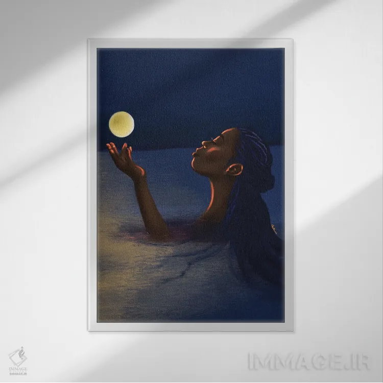 براساس پالت ترکیبی اثر، قاب بلوط روشن (چوبی) پیشنهاد اول است و استخوانی ملایم مکمل. برای سفارشهای پروژهای با ابعاد و قابهای اختصاصی با ایماژ در تماس باشید.
