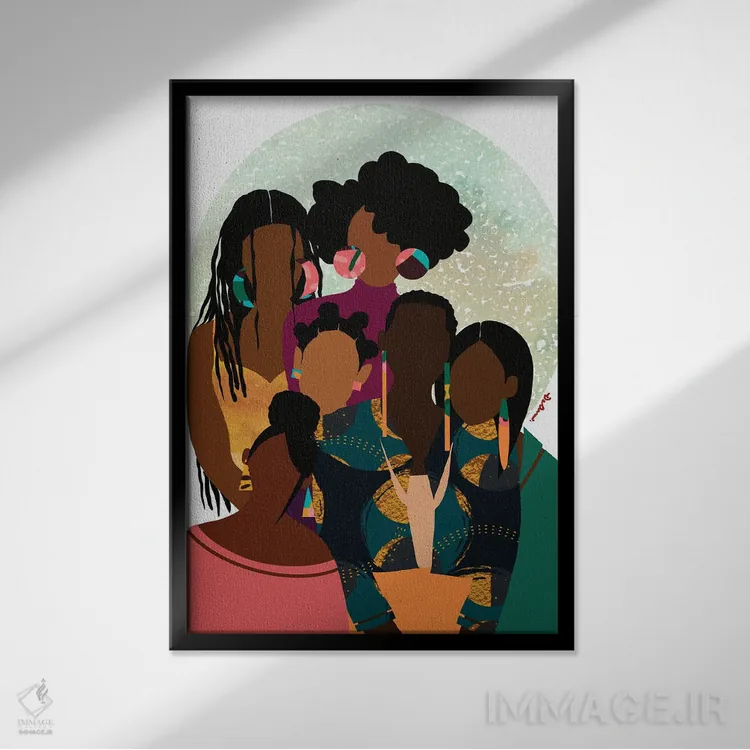 براساس پالت ترکیبی اثر، قاب تیک گرم (چوبی) پیشنهاد اول است و مشکی مات (فریم متوسط) مکمل.