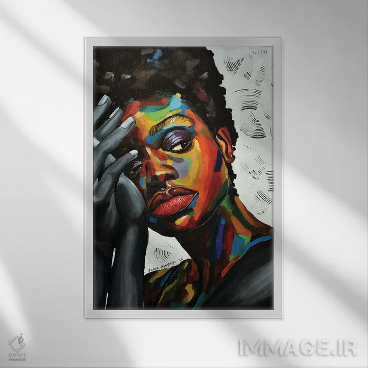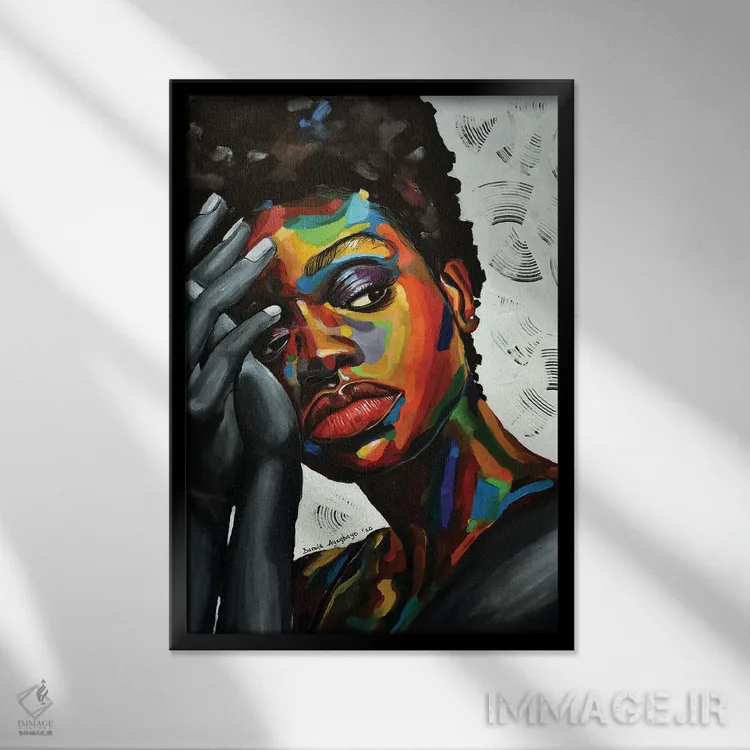 براساس پالت ترکیبی اثر، قاب تیک گرم (چوبی) پیشنهاد اول است و مشکی مات (فریم متوسط) مکمل. برای سفارشهای پروژهای با ابعاد و قابهای اختصاصی با ایماژ در تماس باشید.