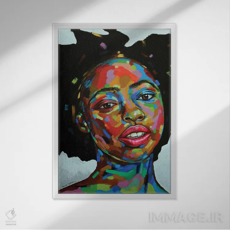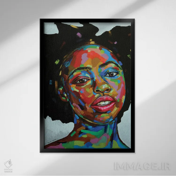 براساس پالت ترکیبی اثر، قاب تیک گرم (چوبی) پیشنهاد اول است و مشکی مات (فریم متوسط) مکمل. برای سفارشهای پروژهای با ابعاد و قابهای اختصاصی با ایماژ در تماس باشید.