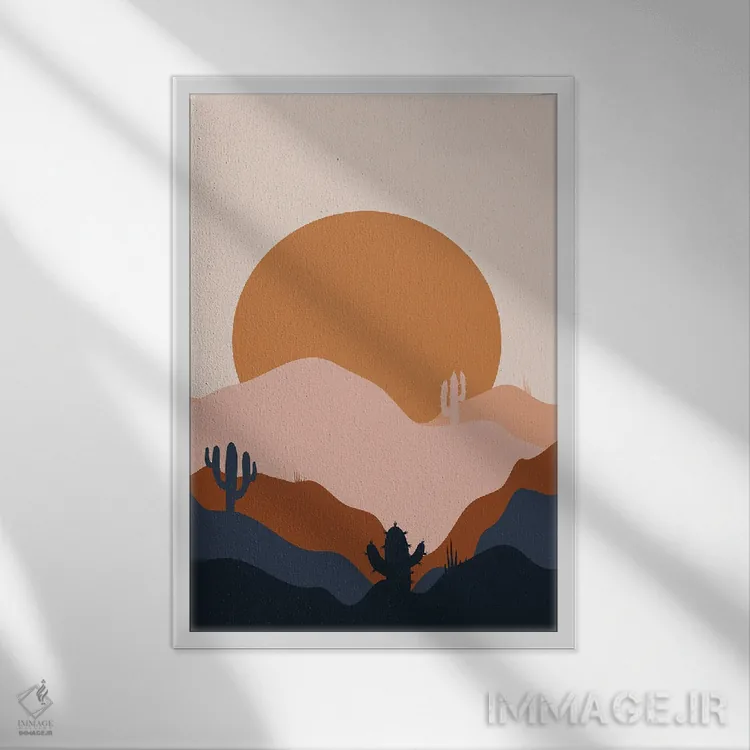 براساس پالت ترکیبی اثر، قاب تیک گرم (چوبی) پیشنهاد اول است و مشکی مات (فریم متوسط) مکمل. برای سفارشهای پروژهای با ابعاد و قابهای اختصاصی با ایماژ در تماس باشید.