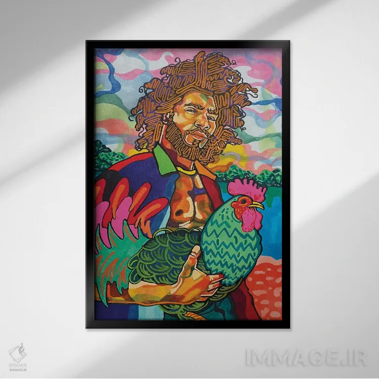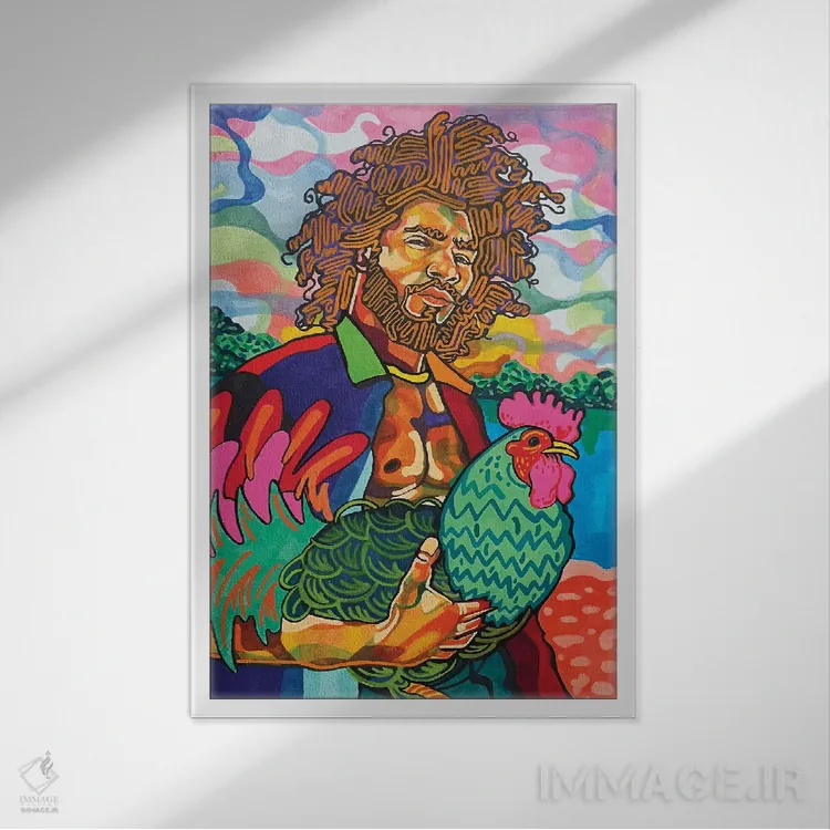 براساس پالت ترکیبی اثر، قاب تیک گرم (چوبی) پیشنهاد اول است و مشکی مات (فریم متوسط) مکمل. برای سفارشهای پروژهای با ابعاد و قابهای اختصاصی با ایماژ در تماس باشید.