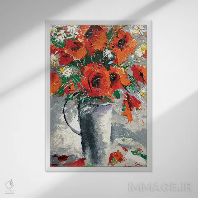 این تابلو با عنوان «شقایقهای قرمز» اثرِ «دمیتری اسپیروس» سلیقهٔ صاحبخانه را بیاغراق نشان میدهد؛ برای نشیمنهای صمیمی و پذیراییهای شیک پیشنهاد میشود. برای پروژههای طراحی داخلی هم گزینهای قابل اتکاست.