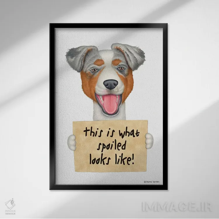 اگر میخواهید دیوار کمی سرزندگیِ محترمانه داشته باشد، «شیپرد استرالیایی (نژاد سگ)» اثرِ «دنی گوردون» به فضا، گرمیِ ملایم اضافه میکند، برای کافههای کوچک و صمیمی گزینهٔ مناسبیست. با قاب چوبی یا مشکی، حس مرتبتری پیدا میکند.