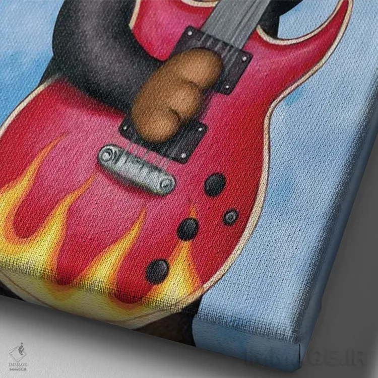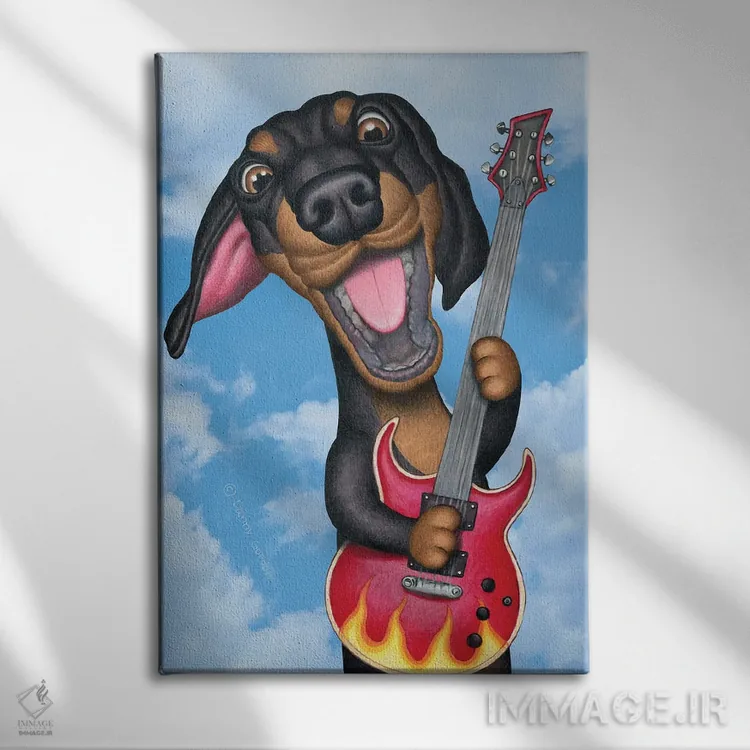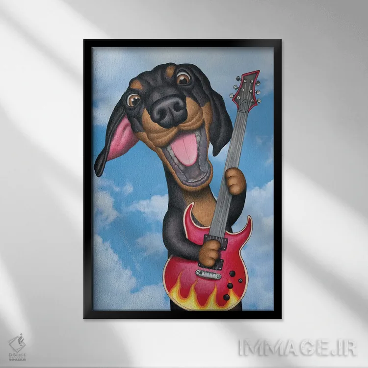 تابلو دکوراتیو داشهوند مشکی نوازنده گیتار با پس زمینه آسمان اثر دنی گوردون