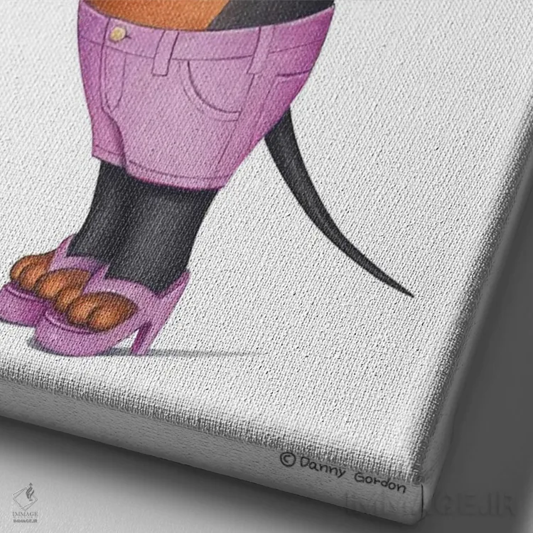 تابلو دکوراتیو داشهوند با شلوارک صورتی اثر دنی گوردون - نمای نزدیک بافت بوم