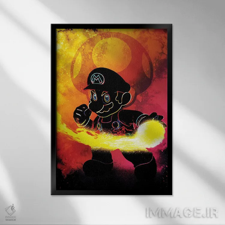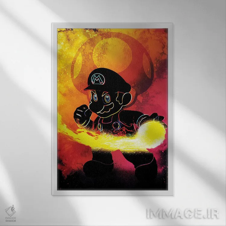 «روح لولهکش قرمز (اشاره به ماریو)» اثرِ «دانی آرت (نام هنرمند یا استودیو)» ترکیب خوبی برای کنار قابهای ساده و خطوط تمیزِ دکوراسیون است.