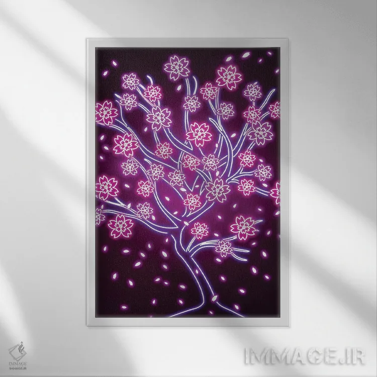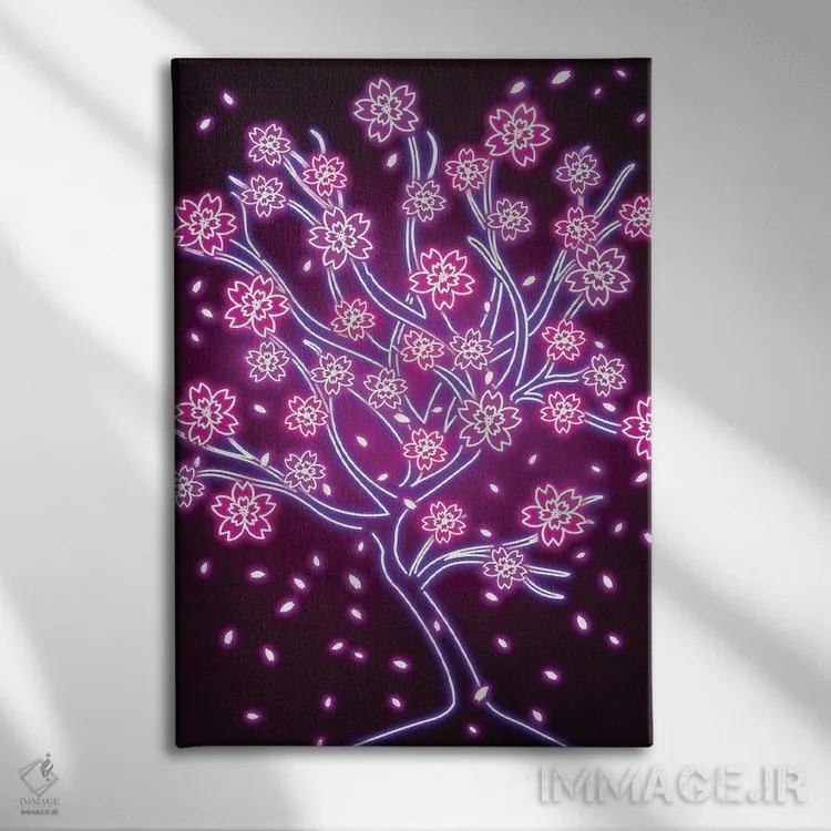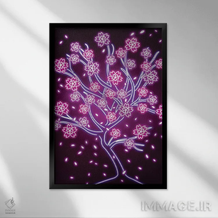 یک انتخاب مدرن، با روایتی مینیمال و مرتب—«ساکورای نئونی (شکوفهٔ گیلاس)» اثرِ «دانی آرت (نام هنرمند یا استودیو)».