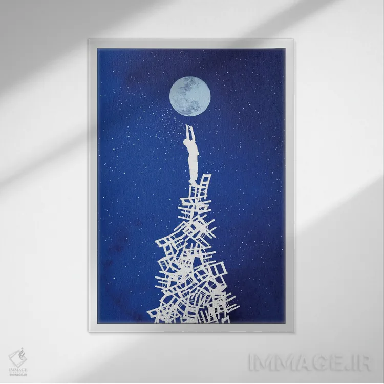 براساس پالت سرد اثر، قاب سفید مات (فریم باریک) پیشنهاد اول است و نقرهای برسخورده (متالیک) مکمل. برای سفارشهای پروژهای با ابعاد و قابهای اختصاصی با ایماژ در تماس باشید.