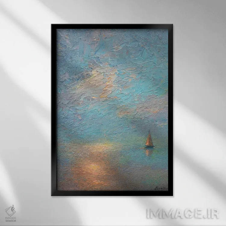براساس پالت ترکیبی اثر، قاب تیک گرم (چوبی) پیشنهاد اول است و مشکی مات (فریم متوسط) مکمل. برای سفارشهای پروژهای با ابعاد و قابهای اختصاصی با ایماژ در تماس باشید.