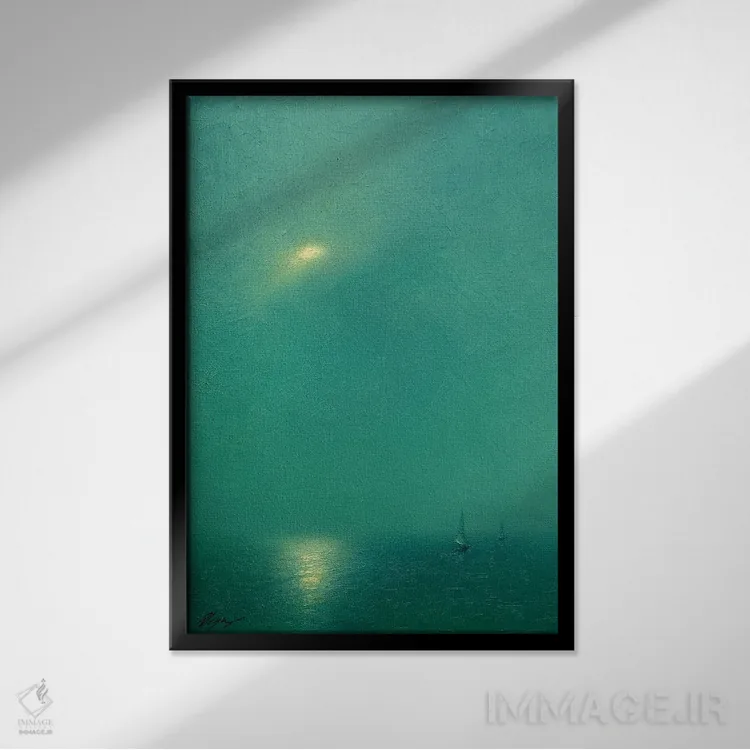 براساس پالت سرد اثر، قاب سفید مات (فریم باریک) پیشنهاد اول است و نقرهای برسخورده (متالیک) مکمل. برای سفارشهای پروژهای با ابعاد و قابهای اختصاصی با ایماژ در تماس باشید.