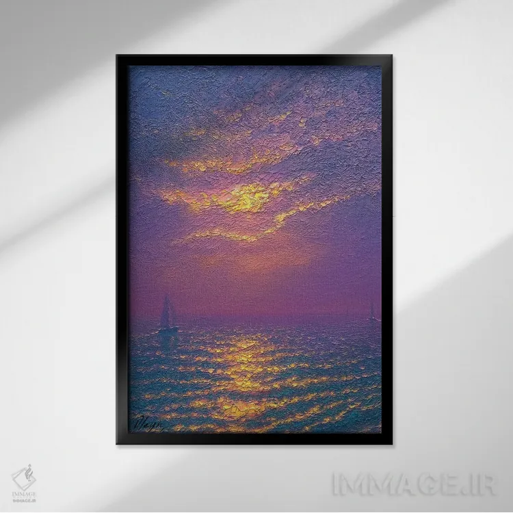 براساس پالت ترکیبی اثر، قاب تیک گرم (چوبی) پیشنهاد اول است و مشکی مات (فریم متوسط) مکمل. برای سفارشهای پروژهای با ابعاد و قابهای اختصاصی با ایماژ در تماس باشید.