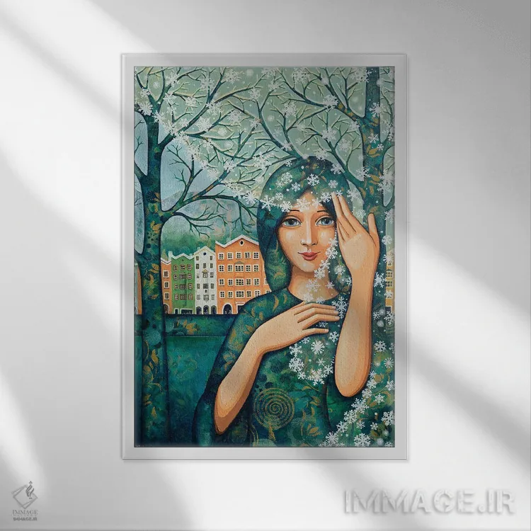 براساس پالت ترکیبی اثر، قاب تیک گرم (چوبی) پیشنهاد اول است و مشکی مات (فریم متوسط) مکمل. برای سفارشهای پروژهای با ابعاد و قابهای اختصاصی با ایماژ در تماس باشید.