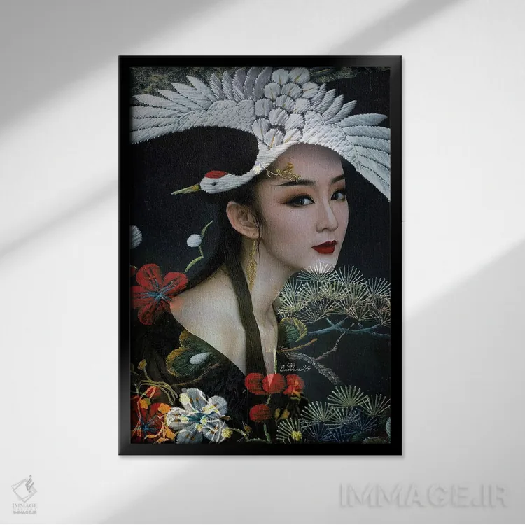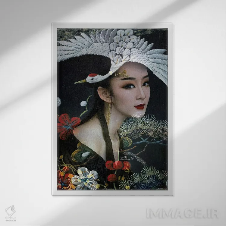 تابلو دکوراتیو بانویی با درنای سفید اثر دومینیک بادوئل