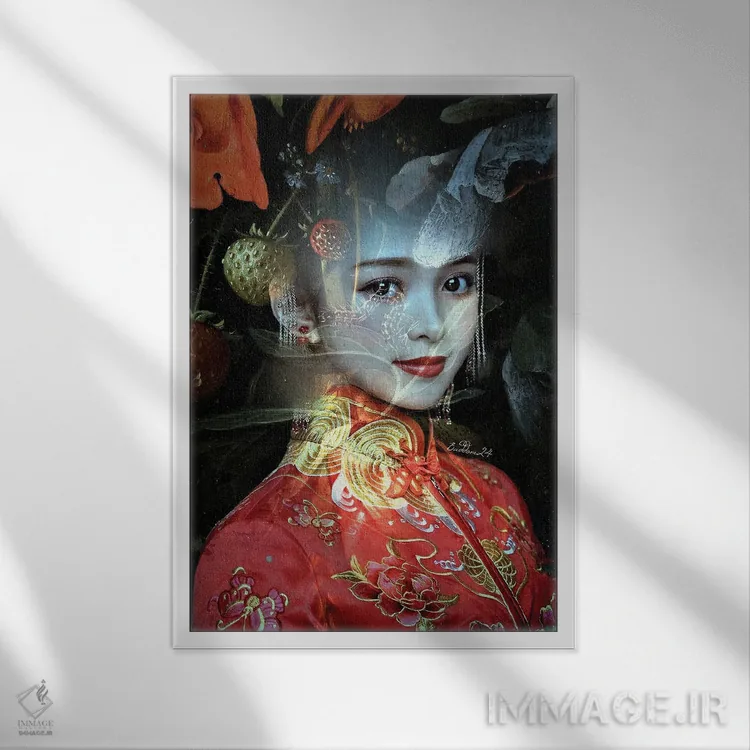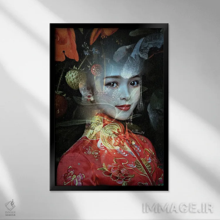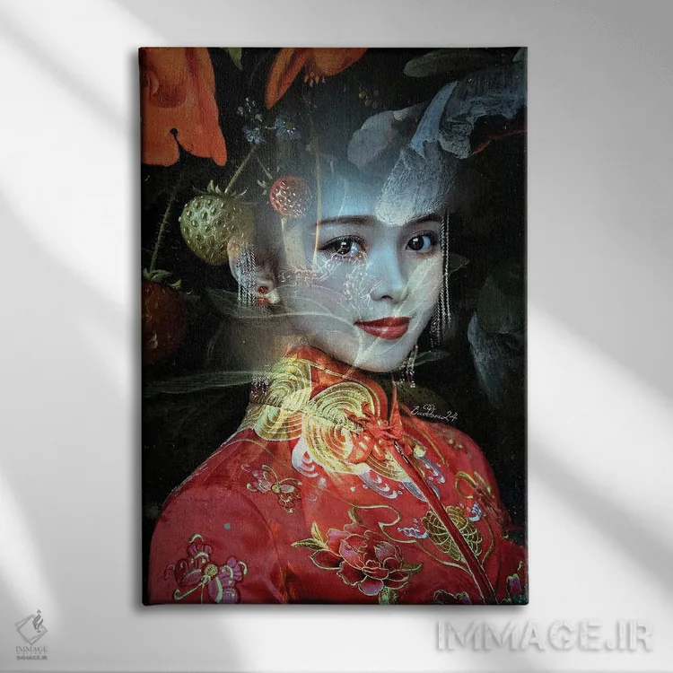 تابلو دکوراتیو بانویی با لباس قرمز اثر دومینیک بادوئل - نمای پرسپکتیو محصول