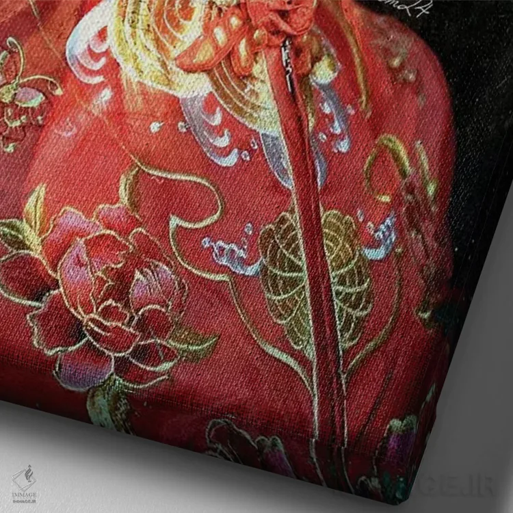 تابلو دکوراتیو بانویی با لباس قرمز اثر دومینیک بادوئل - نمای نزدیک بافت بوم