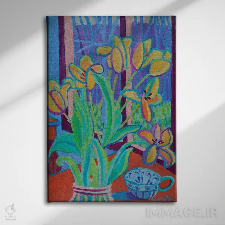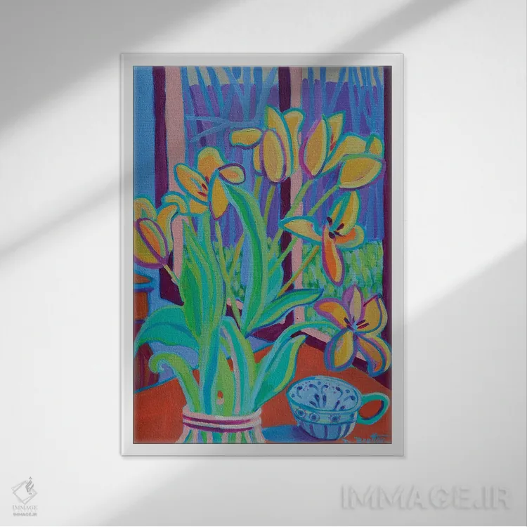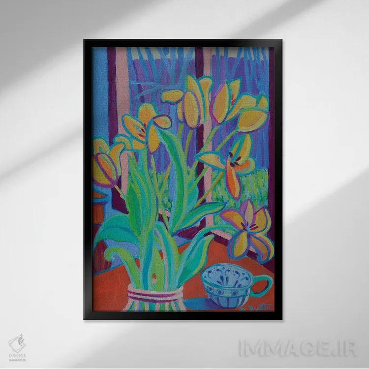 براساس پالت ترکیبی اثر، قاب تیک گرم (چوبی) پیشنهاد اول است و مشکی مات (فریم متوسط) مکمل. برای سفارشهای پروژهای با ابعاد و قابهای اختصاصی با ایماژ در تماس باشید.