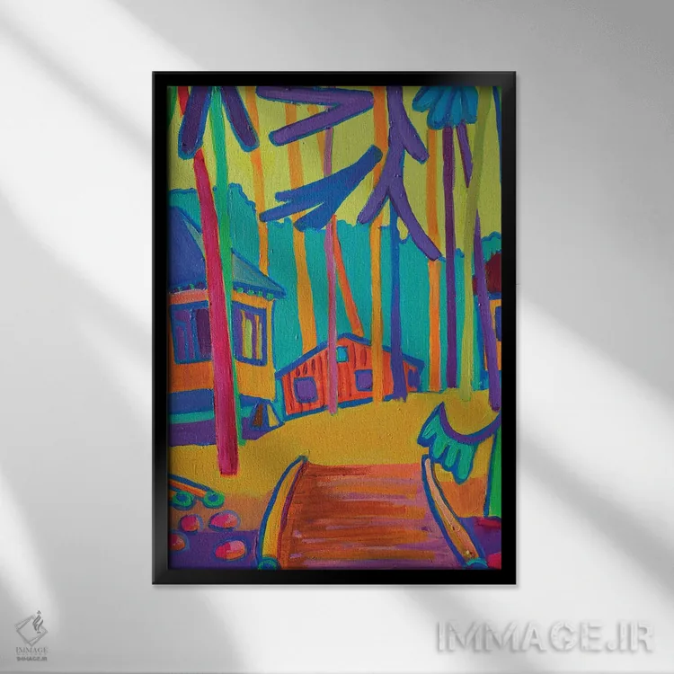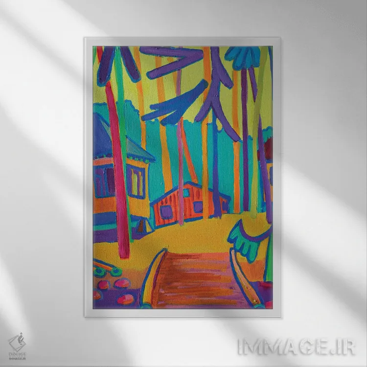 براساس پالت ترکیبی اثر، قاب تیک گرم (چوبی) پیشنهاد اول است و مشکی مات (فریم متوسط) مکمل. برای سفارشهای پروژهای با ابعاد و قابهای اختصاصی با ایماژ در تماس باشید.