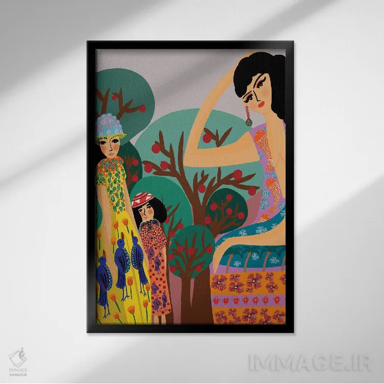 براساس پالت ترکیبی اثر، قاب تیک گرم (چوبی) پیشنهاد اول است و مشکی مات (فریم متوسط) مکمل. برای سفارشهای پروژهای با ابعاد و قابهای اختصاصی با ایماژ در تماس باشید.