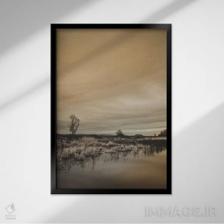 براساس پالت گرم اثر، قاب تیک گرم (چوبی) پیشنهاد اول است و مشکی مات (فریم متوسط) مکمل. برای سفارشهای پروژهای با ابعاد و قابهای اختصاصی با ایماژ در تماس باشید.