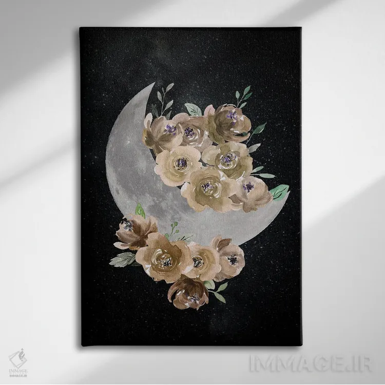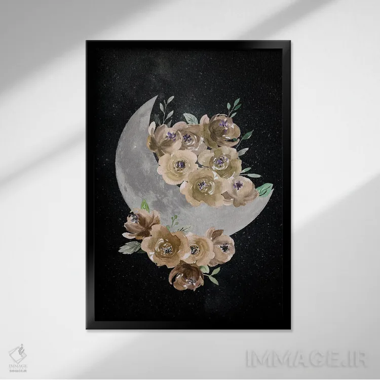 اگر دوست دارید دیوار روشنتر و آرامتر دیده شود، «ماه بوهمی» اثرِ «دنیلا سانتیاگو» فضا را نرمتر و مهماننوازتر میکند، برای نشیمنهای روشن گزینهٔ مناسبیست. با قاب روشن یا چوبی، حس طبیعیتری پیدا میکند.
