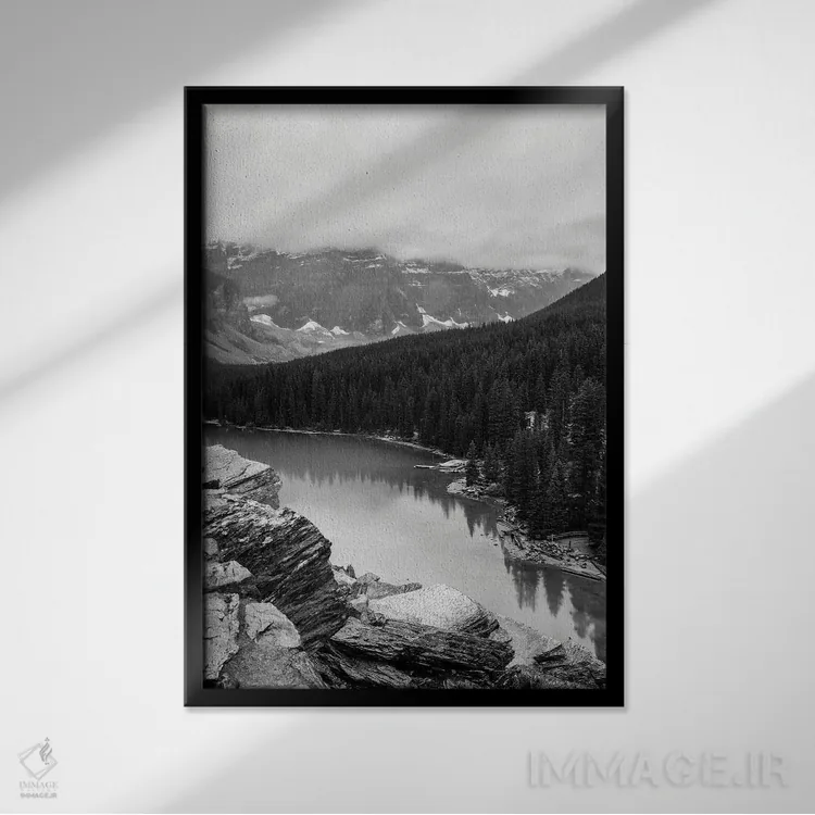 در «دریاچه لوییس (قاب عمودی)»، اثرِ «دن اسپرول» این اثر را با زبان سیاهوسفید ارائه میکند؛ برای دکورهای کلاسیک—مدرن یک انتخاب مطمئن و هماهنگپذیر است.