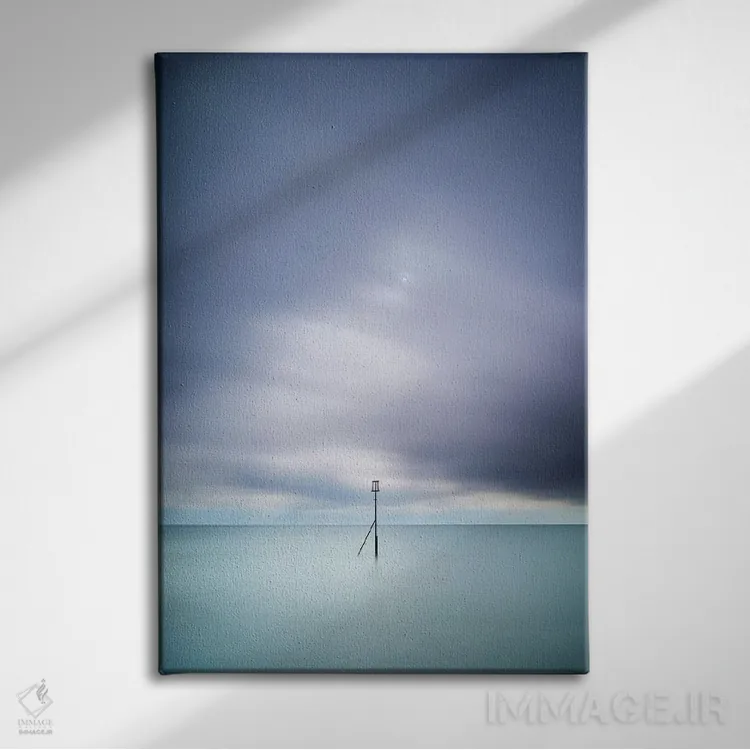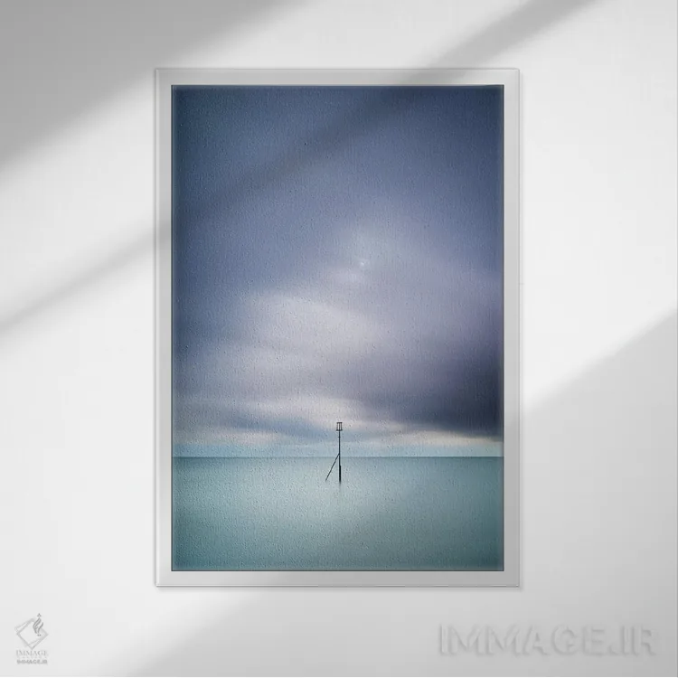 براساس پالت سرد اثر، قاب سفید مات (فریم باریک) پیشنهاد اول است و نقرهای برسخورده (متالیک) مکمل. برای سفارشهای پروژهای با ابعاد و قابهای اختصاصی با ایماژ در تماس باشید.
