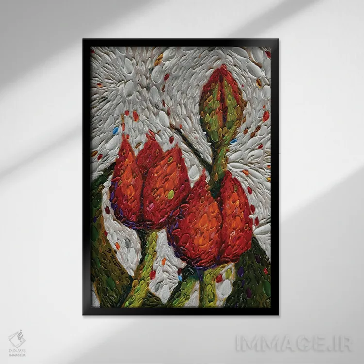 براساس پالت ترکیبی اثر، قاب تیک گرم (چوبی) پیشنهاد اول است و مشکی مات (فریم متوسط) مکمل. برای سفارشهای پروژهای با ابعاد و قابهای اختصاصی با ایماژ در تماس باشید.