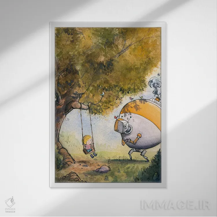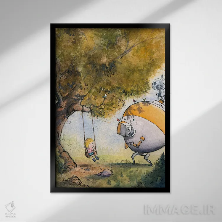 در نگاه اول، «پسر و ربات» اثرِ «دن تاویس» یک حس «تمامشده و پرداختشده» ایجاد میکند؛ برای کافهها و فضاهای عمومی کوچک پیشنهاد میشود. با مبلمان خنثی، تضاد دلنشینی میسازد.