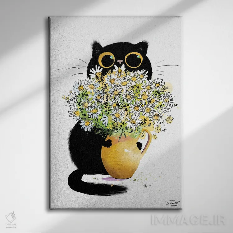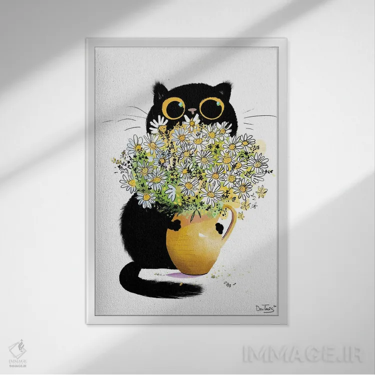 تابلو دکوراتیو گربه عاشق گل ها اثر دن تاویس