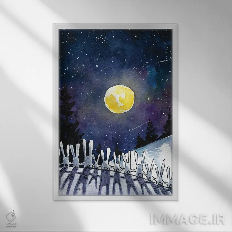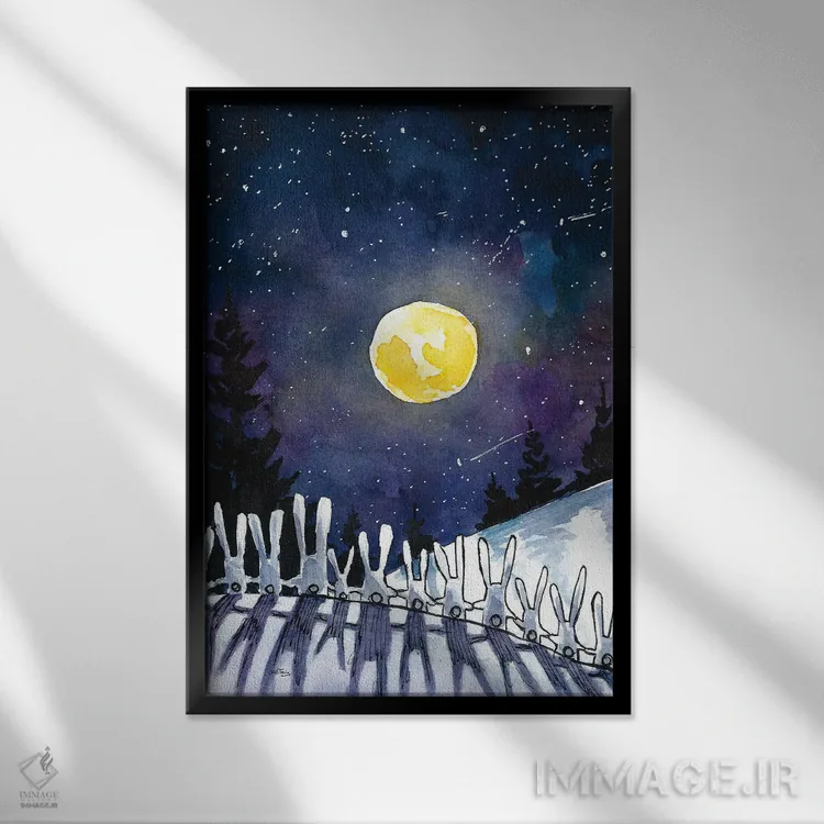 تابلو دکوراتیو خرگوش های شب مهتابی اثر دن تاویس