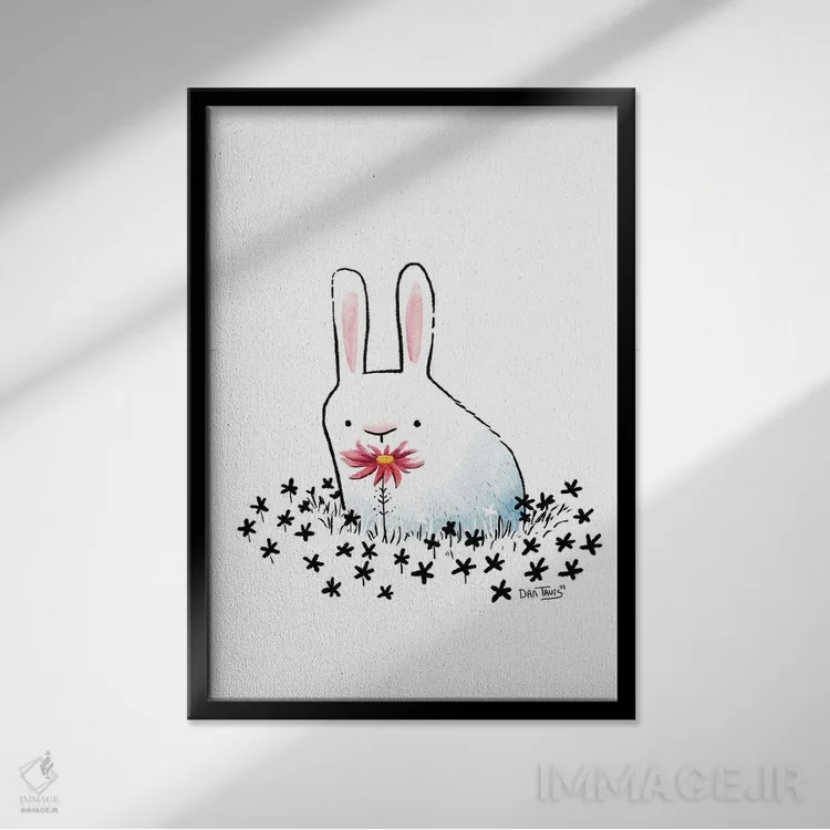 تابلو دکوراتیو خرگوش و گل اثر دن تاویس
