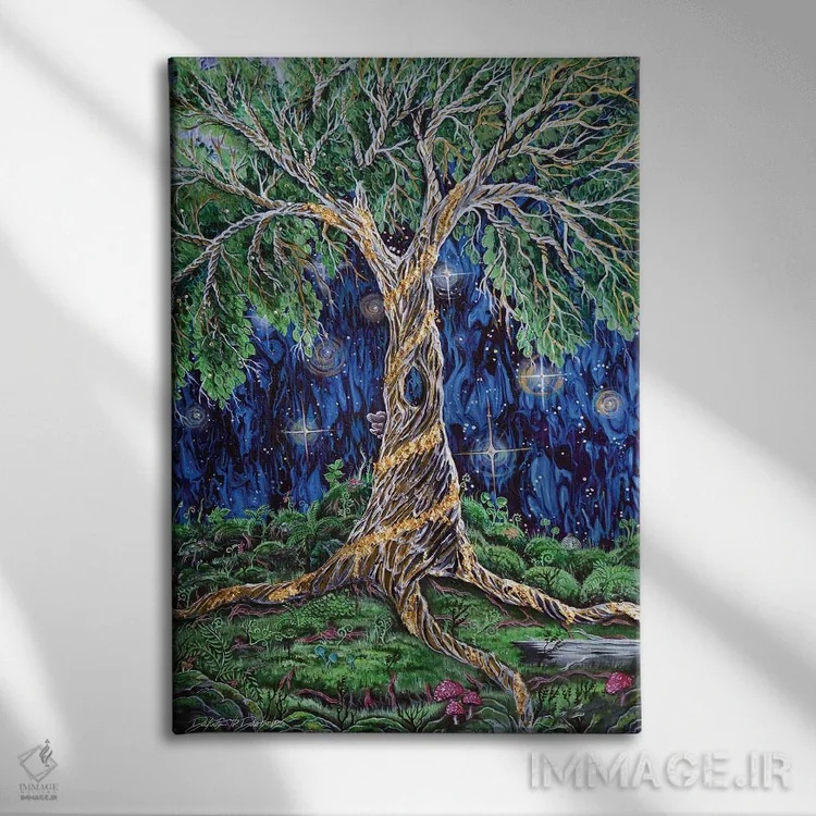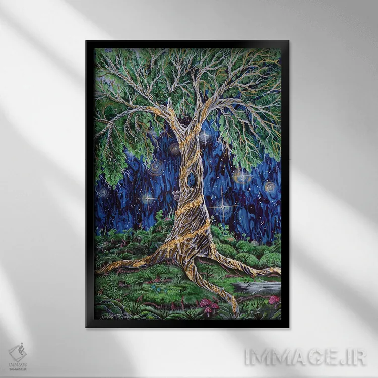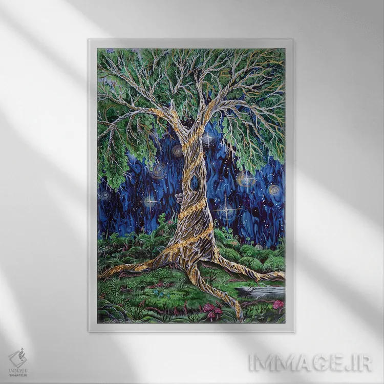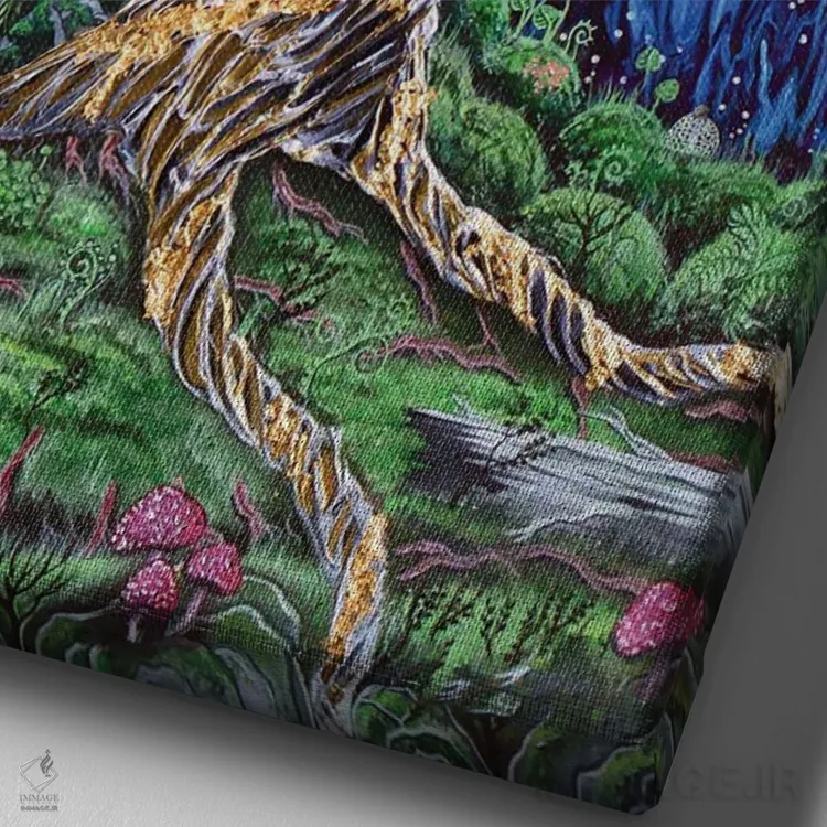 بوم گالری ایماژ نسخهی چیدماناتیوِ سطحبالا از یک اثر هنری است؛ روی کنواس بدون اسید با بافت ظریف و یکنواخت با چاپ هنری به استاندارد جیکلی (Giclée) با رنگدانههای آرشیوی و سیستم رنگ دقیق؛ روی دیوار، کار یکدستتر و خوشکیفیتتر دیده میشود.