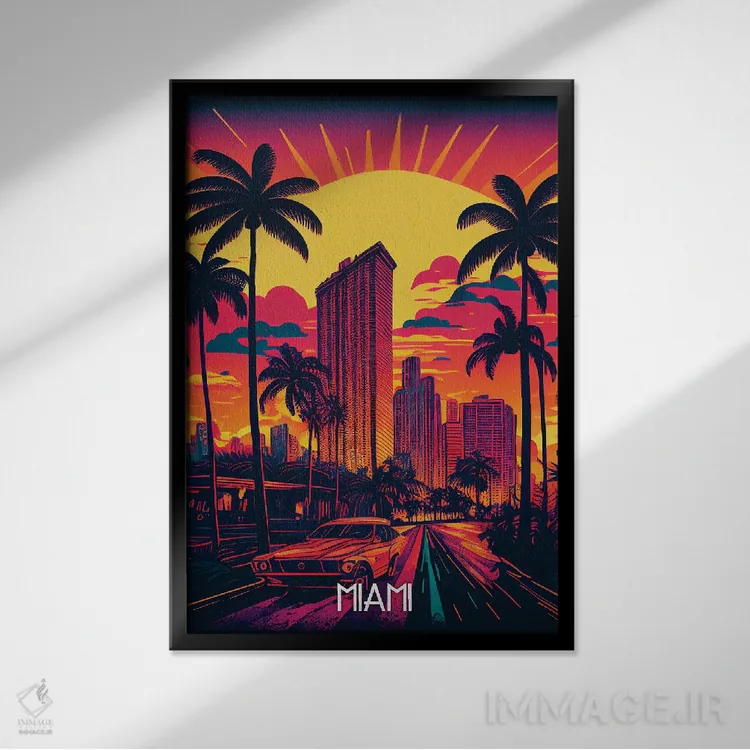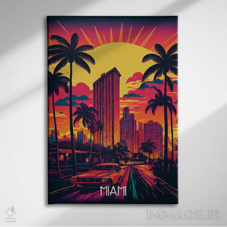 «شهر میامی» اثرِ «دورو آرت (استودیو هنری)» یک قاب شهری و مدرن است؛ موضوعِ این اثر با اجرای هنری، کنار مبلمان ساده خیلی خوب مینشیند.