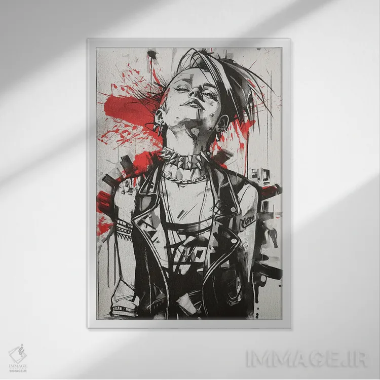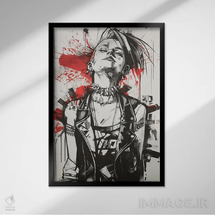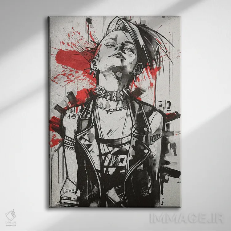 تابلو دکوراتیو زن پانک با جوهر سیاه اثر دورو آرت