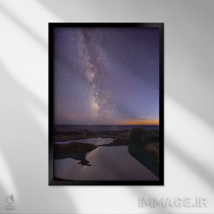 براساس پالت ترکیبی اثر، قاب تیک گرم (چوبی) پیشنهاد اول است و مشکی مات (فریم متوسط) مکمل. برای سفارشهای پروژهای با ابعاد و قابهای اختصاصی با ایماژ در تماس باشید.