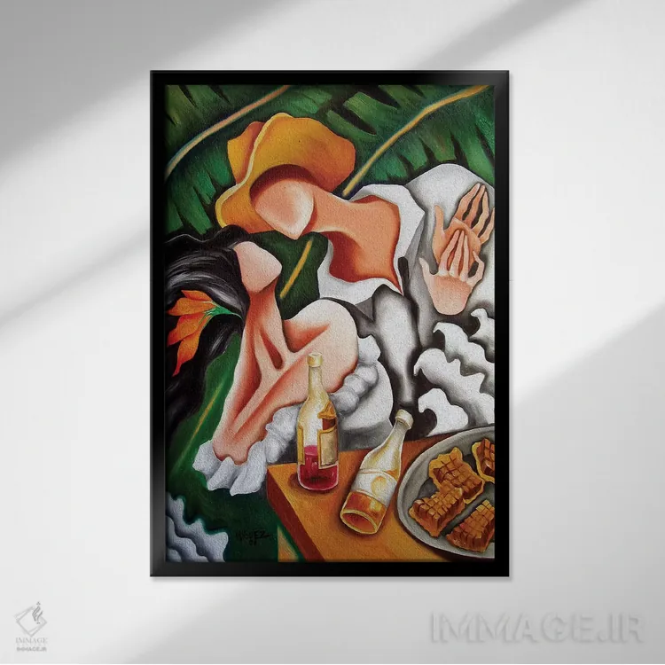 براساس پالت ترکیبی اثر، قاب تیک گرم (چوبی) پیشنهاد اول است و مشکی مات (فریم متوسط) مکمل. برای سفارشهای پروژهای با ابعاد و قابهای اختصاصی با ایماژ در تماس باشید.